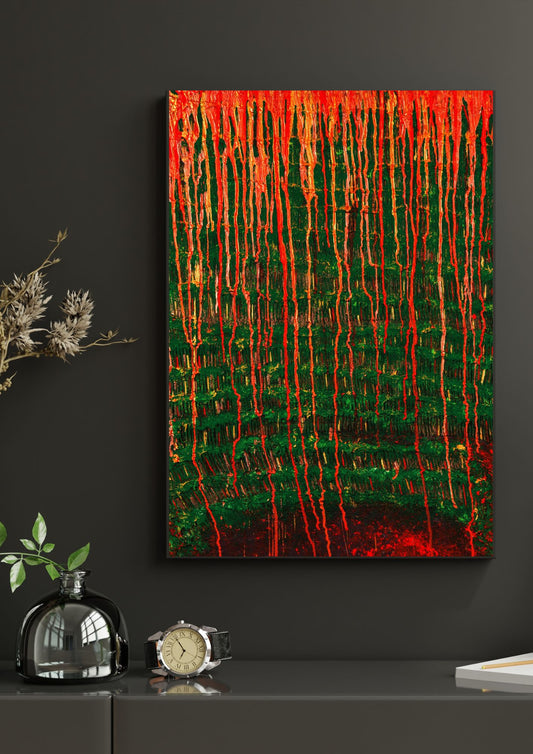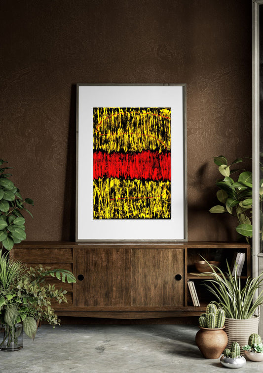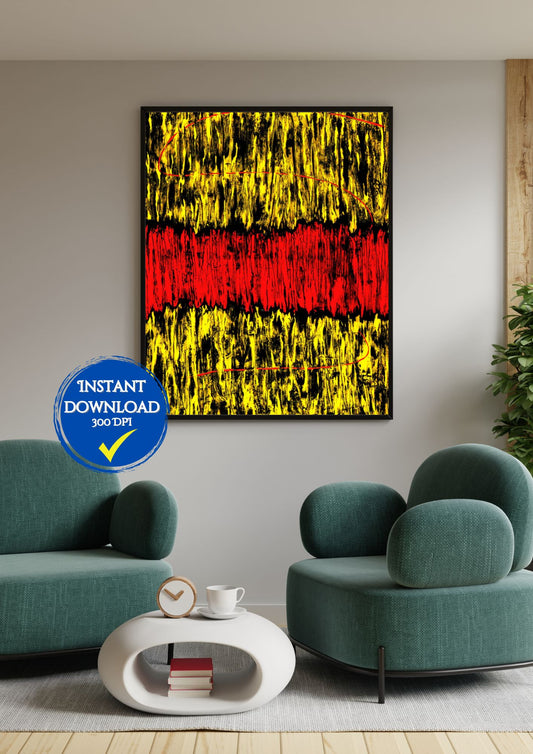 Affiche murale, Art abstrait noir/rouge/jaune à télécharger, décoration intérieure