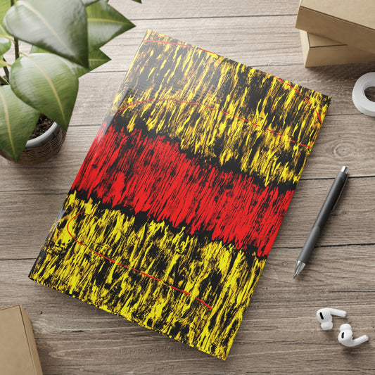 Carnet de notes couverture rigide, art abstrait noir, rouge et jaune