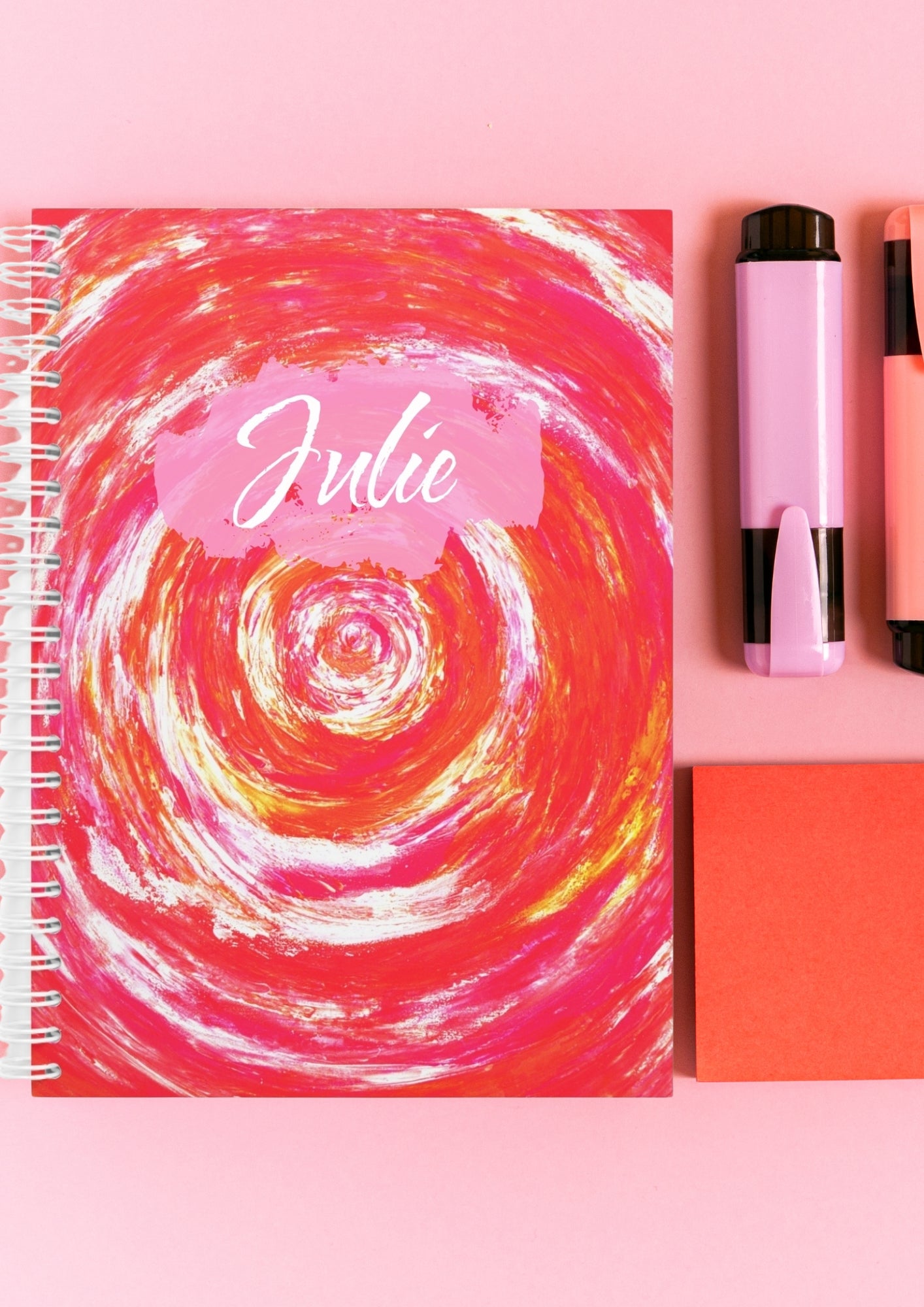 Carnet de Notes à spirales, Bullet journal avec Art abstrait rose
