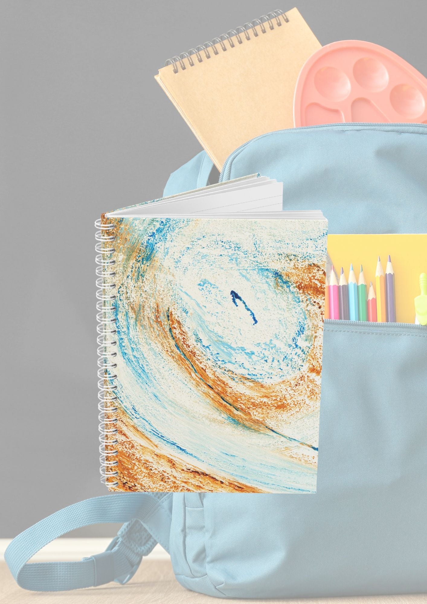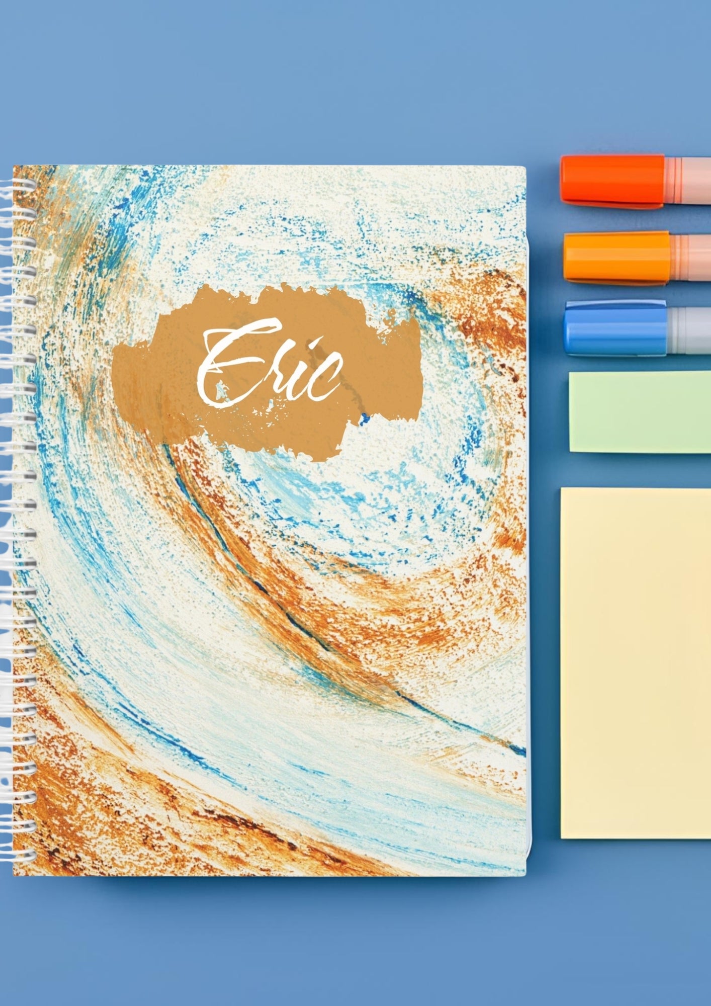 Carnet de Notes à spirales, Bullet journal avec Art abstrait sable bleu texturé
