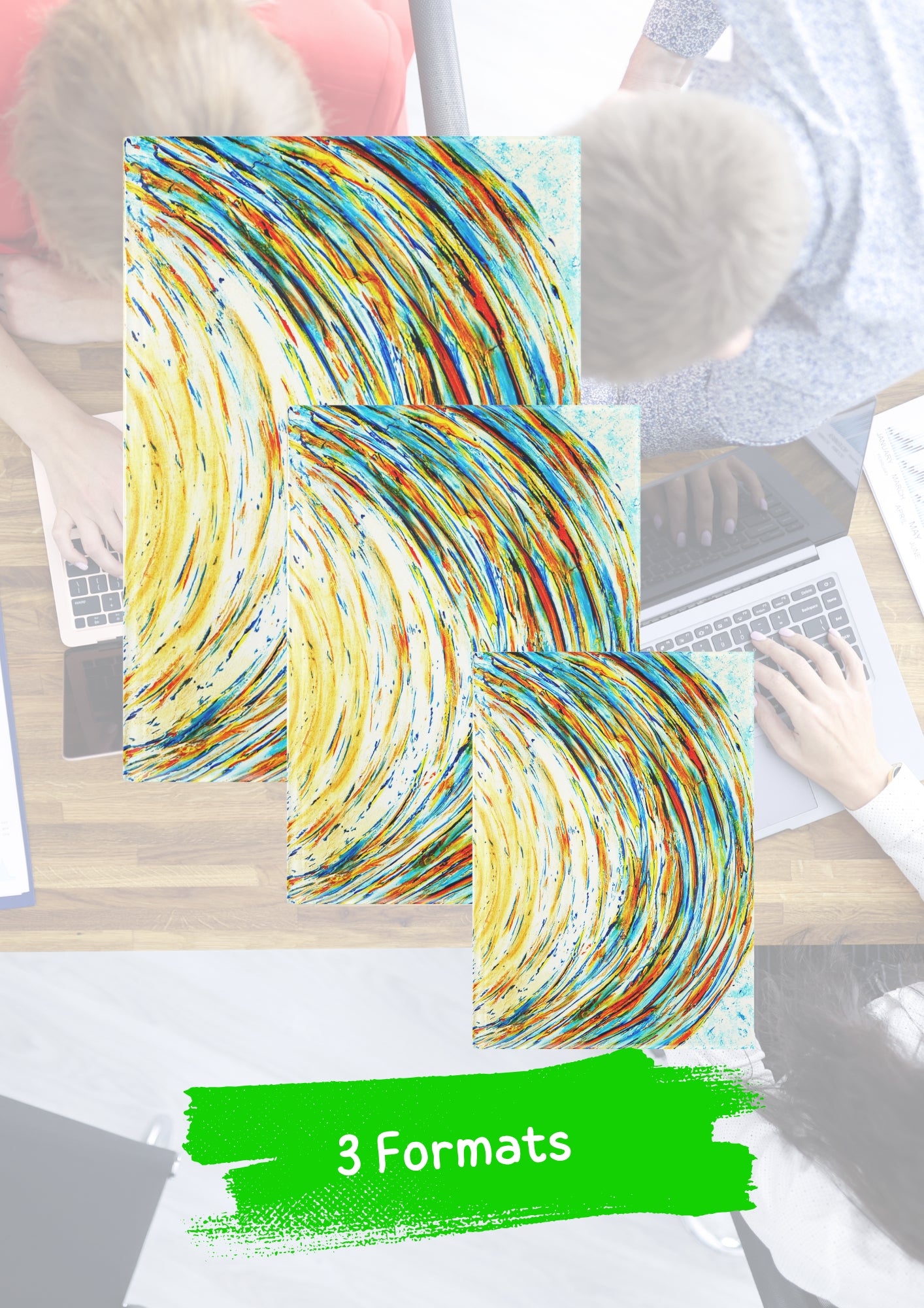 Équilibre parfait : Offre un compromis entre A4 et A5, idéal pour ceux qui veulent un peu plus d'espace sans être encombrés. Souvent apprécié pour son aspect légèrement plus large, ce qui peut donner une touche élégante aux carnets et ainsi profiter de l'art abstrait. Convient aussi bien pour des notes que pour des croquis, offrant une flexibilité d'utilisation.