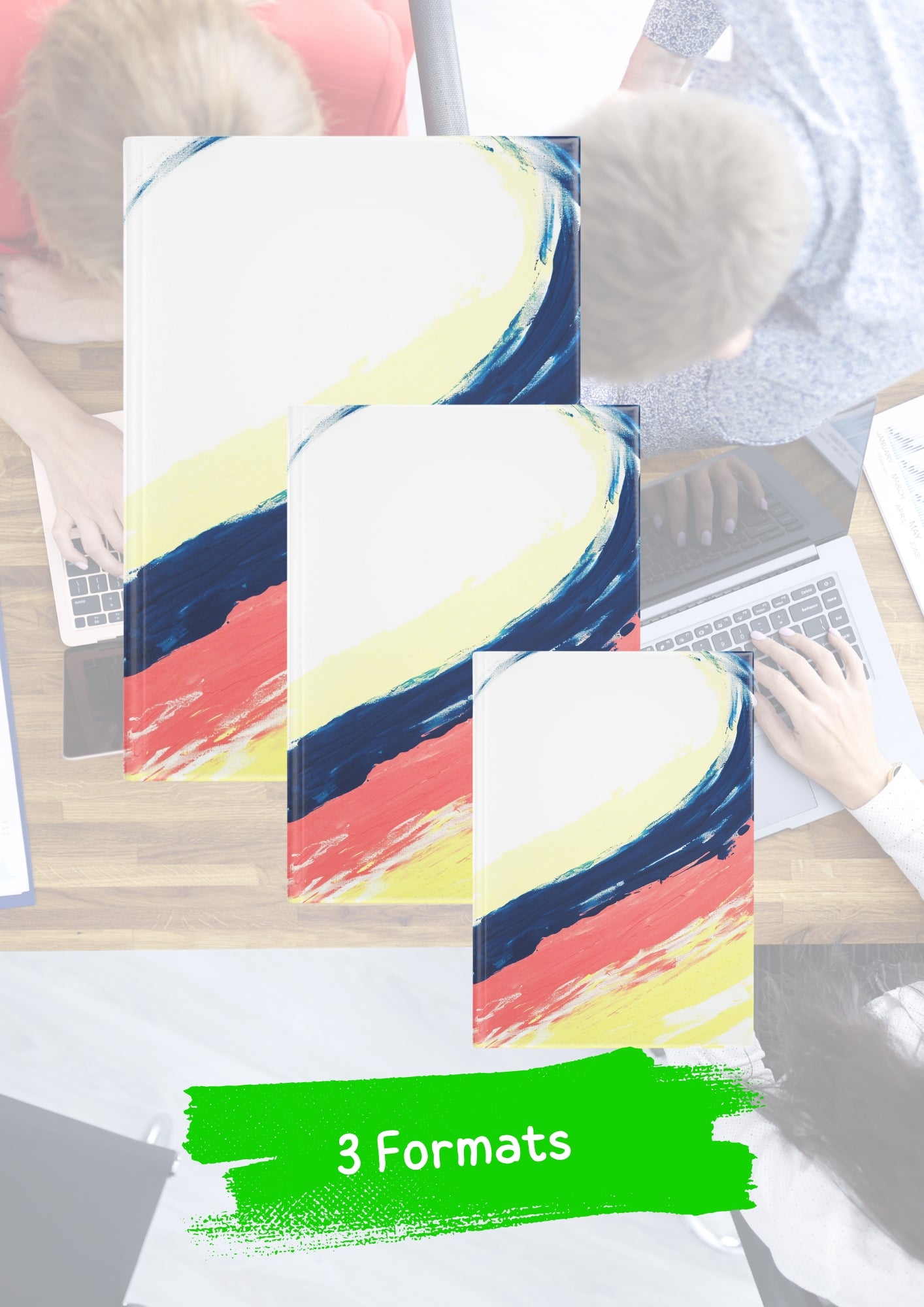 Équilibre parfait : Offre un compromis entre A4 et A5, idéal pour ceux qui veulent un peu plus d'espace sans être encombrés. Souvent apprécié pour son aspect légèrement plus large, ce qui peut donner une touche élégante aux carnets et ainsi profiter de l'art abstrait. Convient aussi bien pour des notes que pour des croquis, offrant une flexibilité d'utilisation.