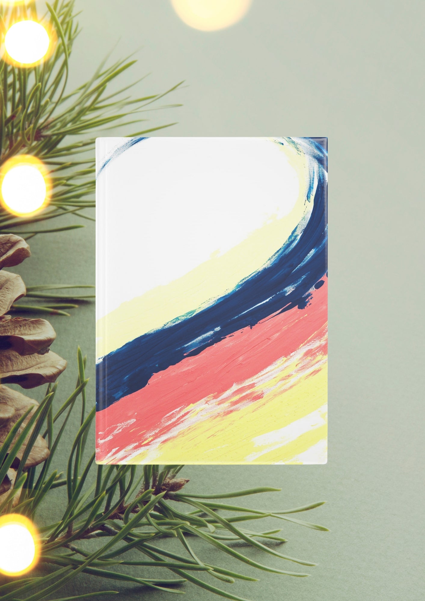 Carnet de notes couverture rigide, art abstrait bleu et rose