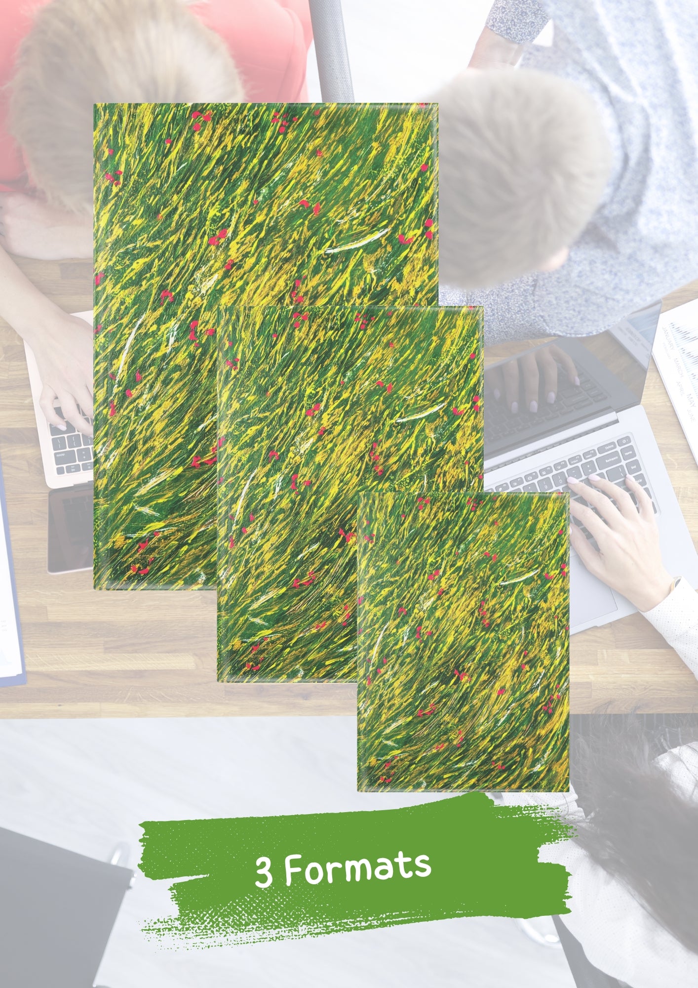 Équilibre parfait : Offre un compromis entre A4 et A5, idéal pour ceux qui veulent un peu plus d'espace sans être encombrés. Souvent apprécié pour son aspect légèrement plus large, ce qui peut donner une touche élégante aux carnets et ainsi profiter de l'art abstrait. Convient aussi bien pour des notes que pour des croquis, offrant une flexibilité d'utilisation.